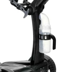 This umbrella holder is not designed to hold an umbrella while the trolley is in motion, indeed for many users it will be too low to achieve this. It is designed as a place to put an umbrella while you take a shot.